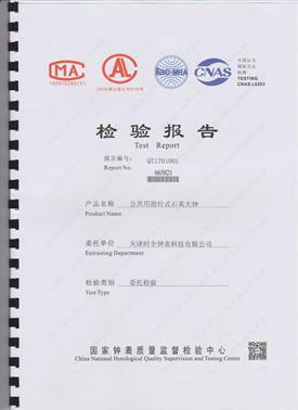 - 熱烈祝賀我公司通過國家鐘表質量監督檢驗中心依據中華人民共和國工業和信息部發布的最新行業標準QB/T1987-2013經檢...